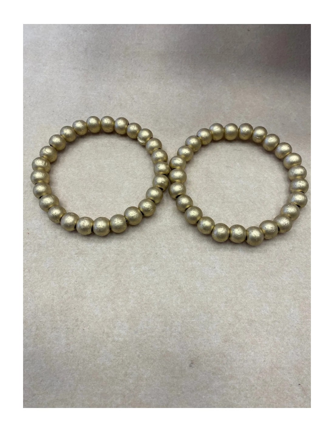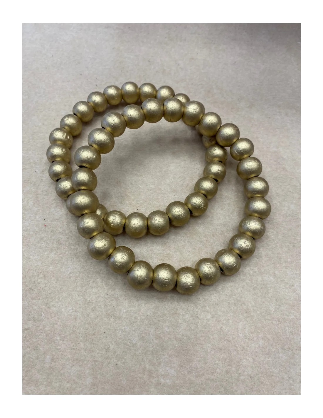 Gold Ahşap Boncuklu Yuvarlak Çanta Sapi